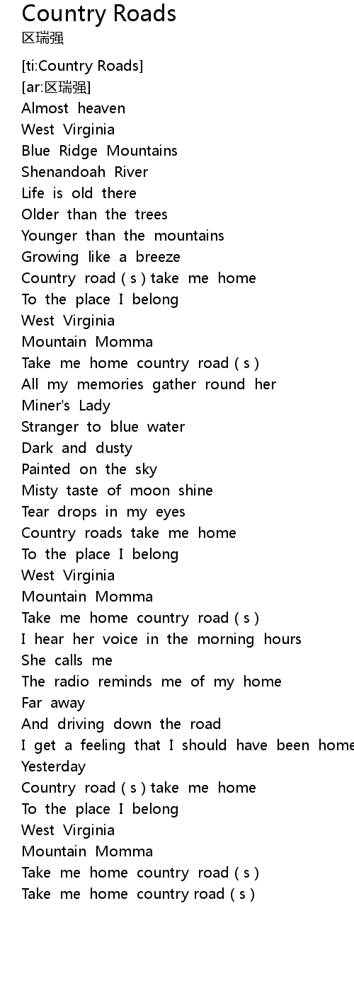 Country Road Lyrics Follow Lyrics ... | 500x1210 px